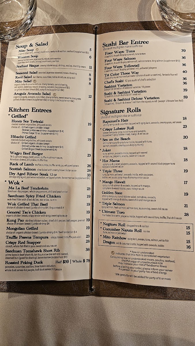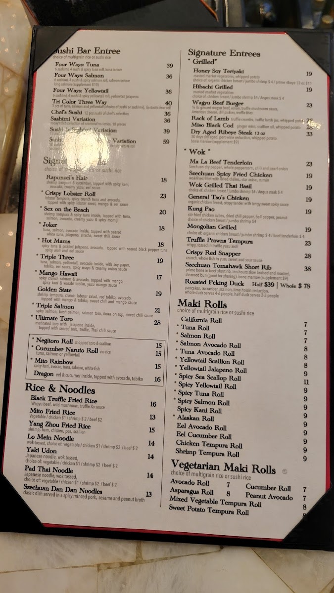 Welcome to Mito - Babylon, a culinary gem located at 48 Deer Park Ave, Babylon. Here, Asian fusion takes center stage, and the menu is a delightful exploration of bold flavors. The hot small plates are a highlight, featuring irresistible options like Braised Galbi Short Rib and Chinese Five Spice Spare Ribs. For those seeking lighter fare, the Chicken Lettuce Wrap and Rock Shrimp Tempura will impress. Many diners rave about the exquisite Bluefin Tuna Tartare and Yellowtail Jalapeno, which showcase the quality of their seafood.